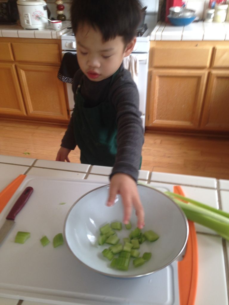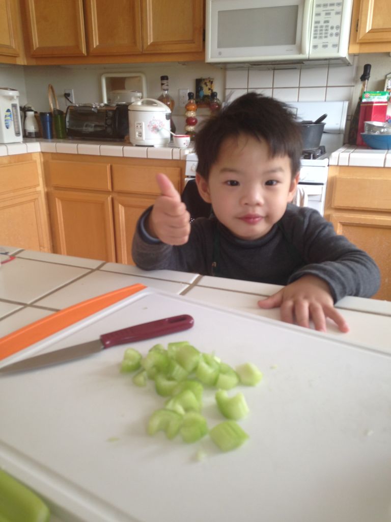 Micah was stoked when he got a chance to slice these celeries. He left the last two stalks for me because he said I should try slicing because it was fun. I was glad he had a good experience because he will certainly be my kitchen helper in the near future. He felt extremely proud of his achievement and shared his contribution with the family while we were enjoying our meal.