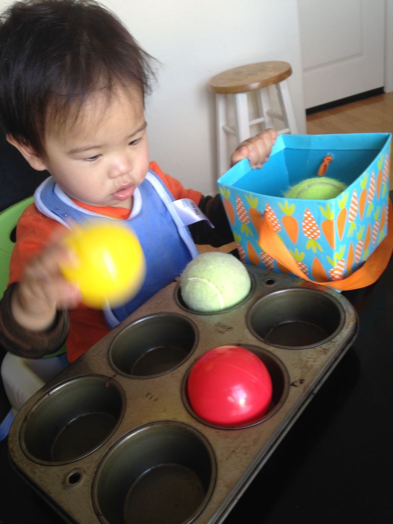 Materials: Balls, muffin tin